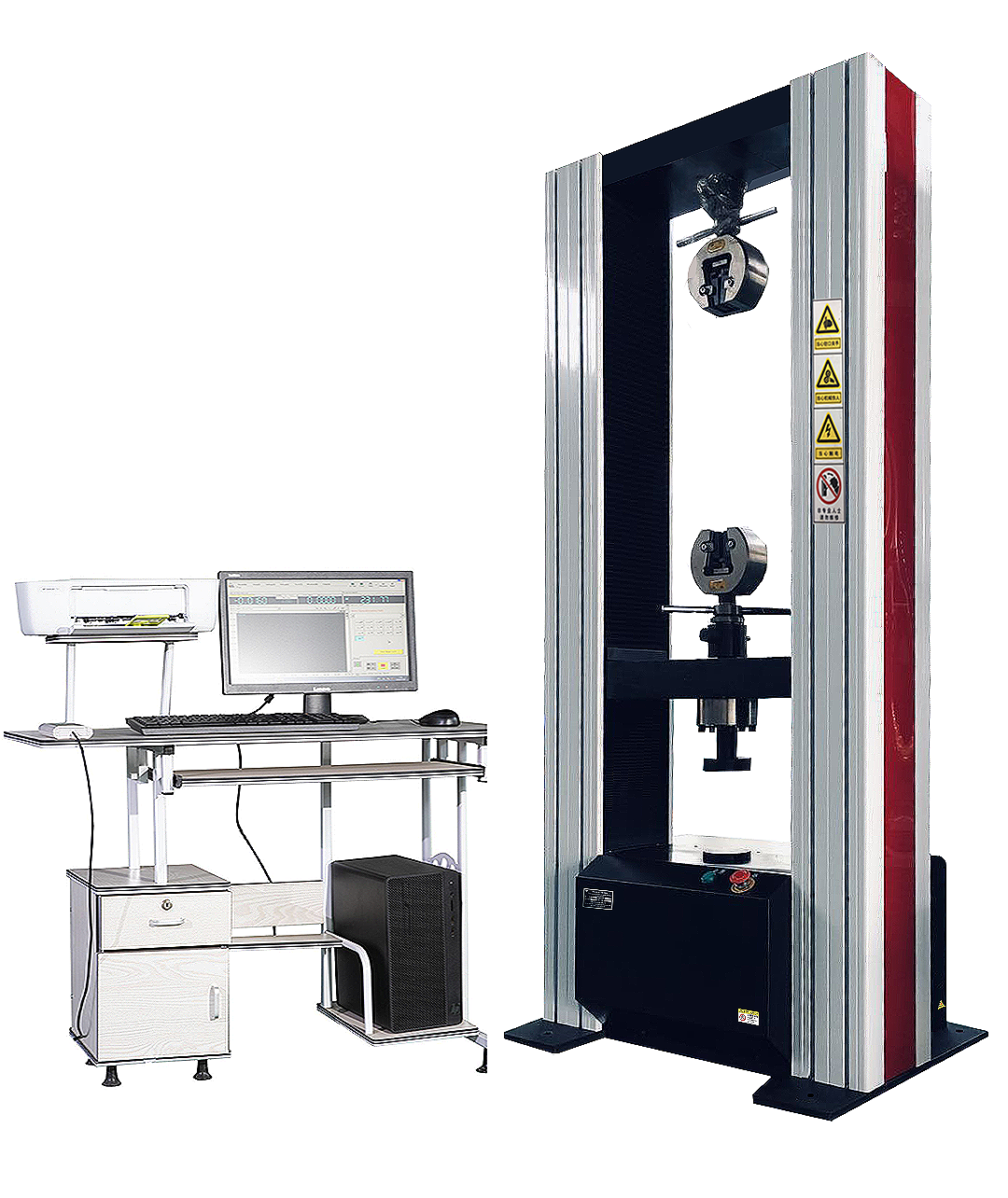 單臂電子萬能試驗機(jī)性能特點:采用的是單臂式結(jié)構(gòu)形式,試驗行程一般有600/1000mm,活動性能小,樣式簡單,落地式和門式相對單臂比較笨重,單臂配置相對低一點,試驗力準(zhǔn)確度一般是±1%,位移分辨率0.001mm。