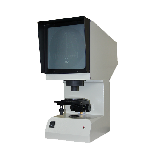 本投影儀光源發(fā)出的光線經(jīng)聚光鏡照射到被測(cè)物體,再經(jīng)物鏡將被照射物體放大的輪廓投射到投影屏上。根據(jù)需要,本儀器為單一投射照明,光源通過一系列光學(xué)元件投射在工作臺(tái)上,再通過一系列光學(xué)元件將被測(cè)試樣缺口輪廓清晰的投射到投影儀上。物體經(jīng)二次放大和二次反射成正像,在投影屏上所看到的圖形與實(shí)際試樣放置的方位一致。